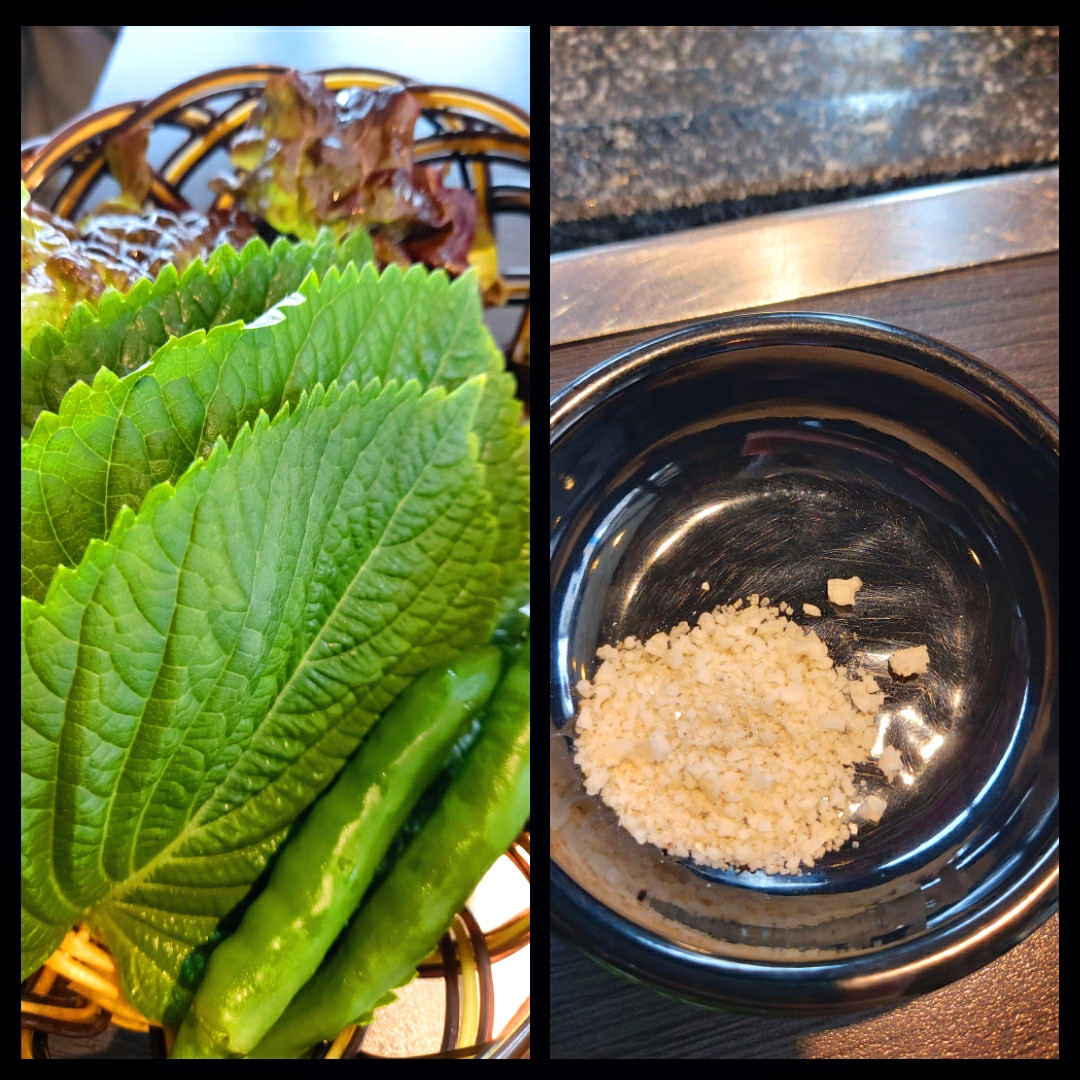 상추무침, 깻잎짱아찌, 양파짱아찌, 쌈장, 소금, 편마늘, 쌈채소, 계란찜이 기본으로 제공됩니다😊