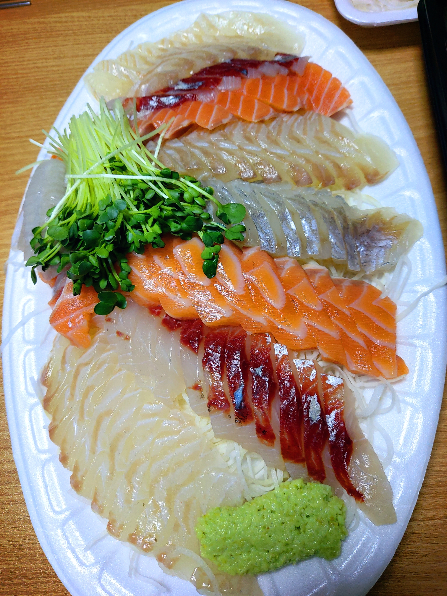 우럭, 대광어, 숭어, 연어, 스끼다시, 가리비 2p, 초고추장 2개, 각종 소스, 쌈 야채 가 제공됩니다.