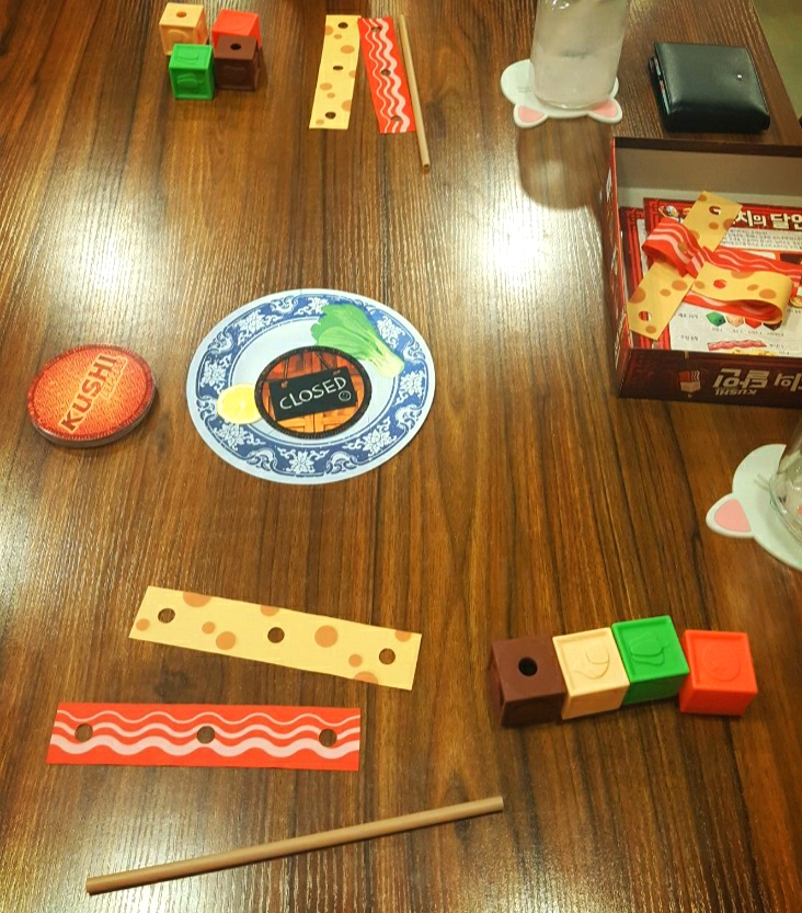 '꼬치의 달인'이라는 게임입니다 히히 스피드하게 꼬치를 완성하세야 해요 크큭 가끔 이게 다빈치 코드보다 재밌더라구용 히히