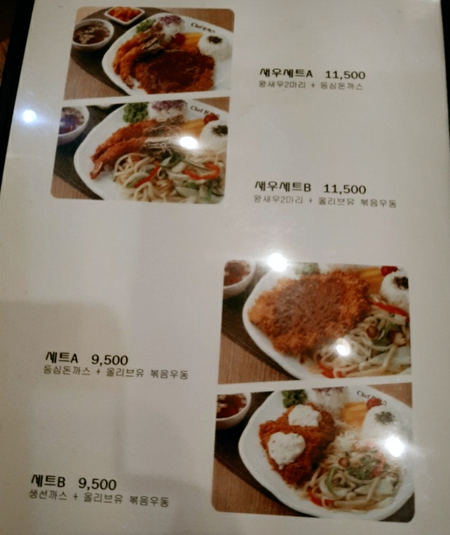 쉐프돈가스의 메뉴판 사진입니다😊