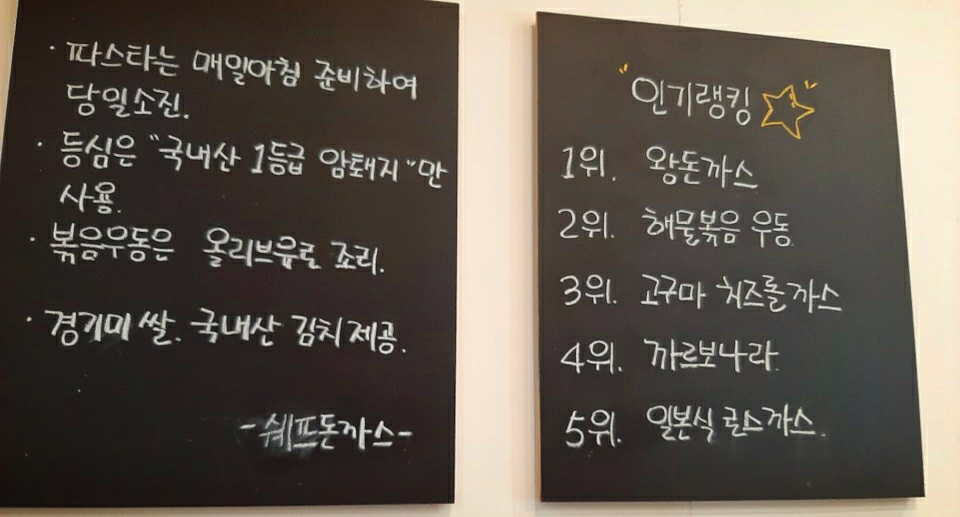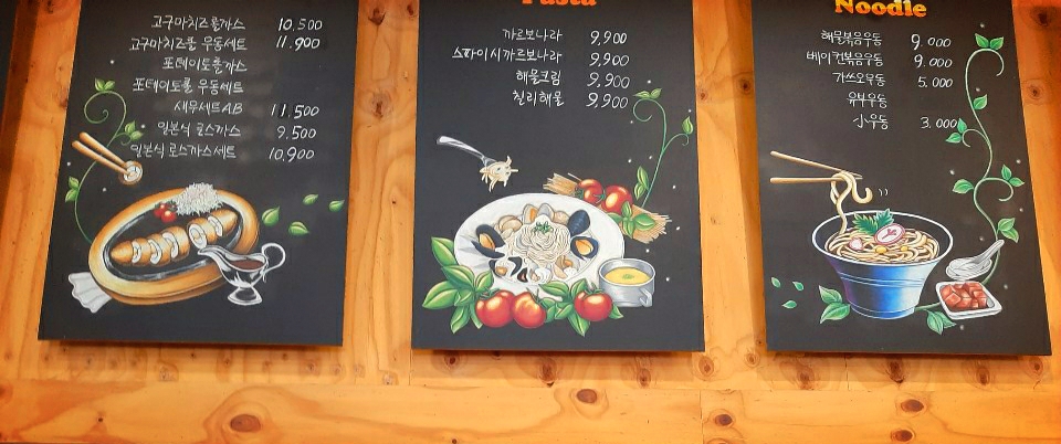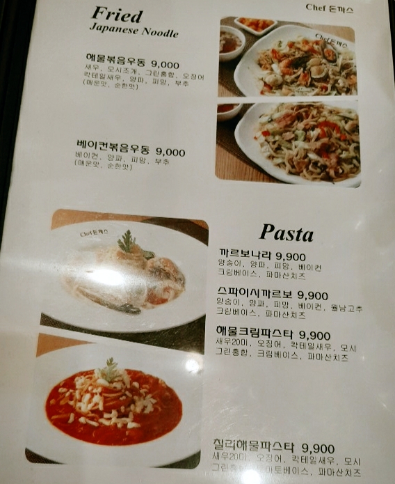 주로 돈가스나 파스타 그리고 우동류를 팔더라구요!