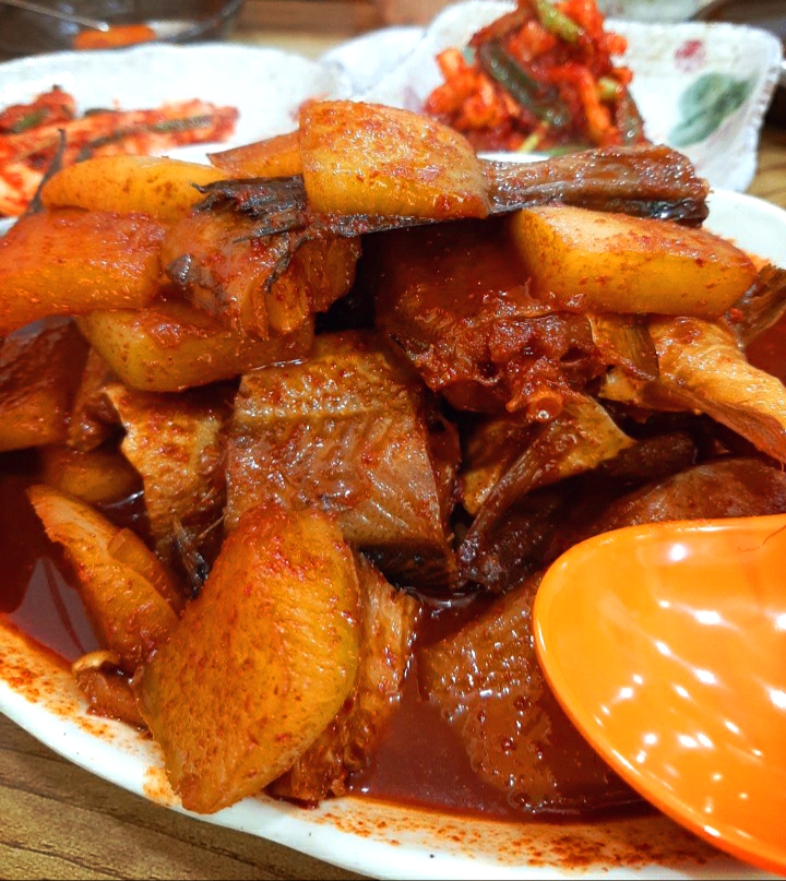 각종 무와 코다리 생선들이 볶아져서 빛깔들이 침 고이게 하는 비쥬얼이긴 하네요 히히