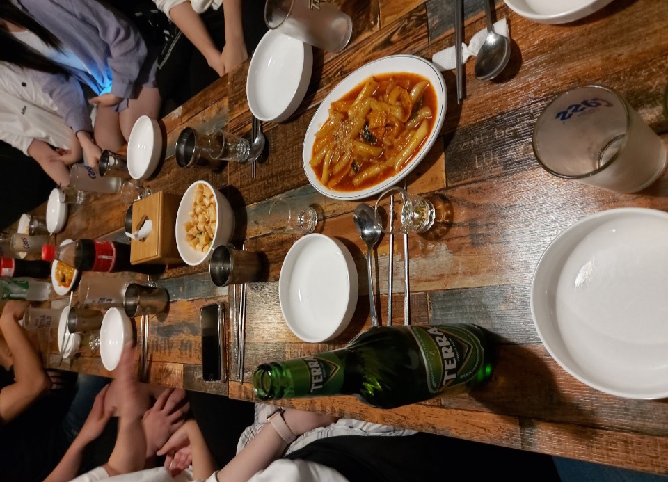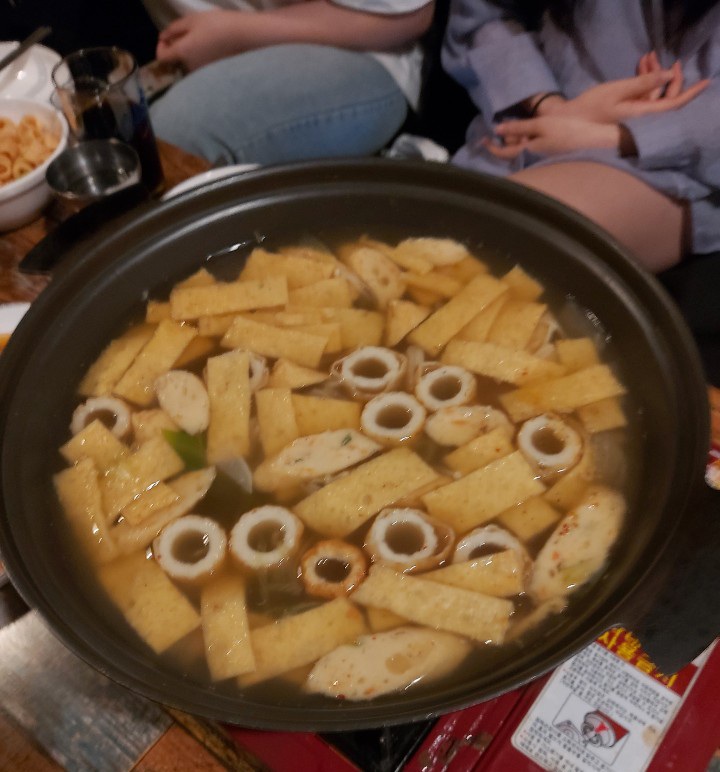 이 날 취해서 정확히는 잘 기억은 안 나지만 정말 골고루 시켜먹었답니다. 다들 못 고르고 망설이길래 제가 대표로 골고루 시켰답니다. 친구들이 다들 착해서 결정을 못하고 배려해서 양보를 해주더라고요. 그래서 골고루 시켜서 나눠먹었답니다. 그래서 시킨 메뉴가 오뎅탕, 부대찌개, 닭똥집, 계란말이였나? 그랬습니다.