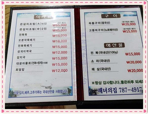 자세히 보시라고 메뉴판을 찍어왔답니다😊