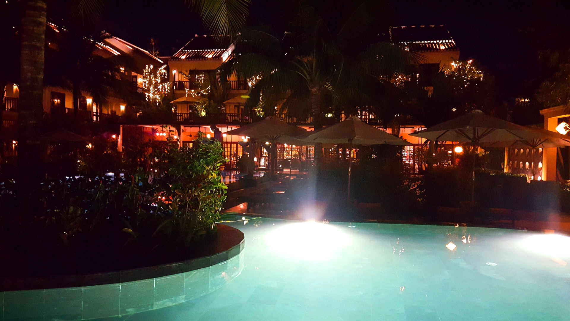 밤에 수영장 불을 꺼놓지 않아서 24시간 이쁜 뷰를 즐길 수가 있습니다.