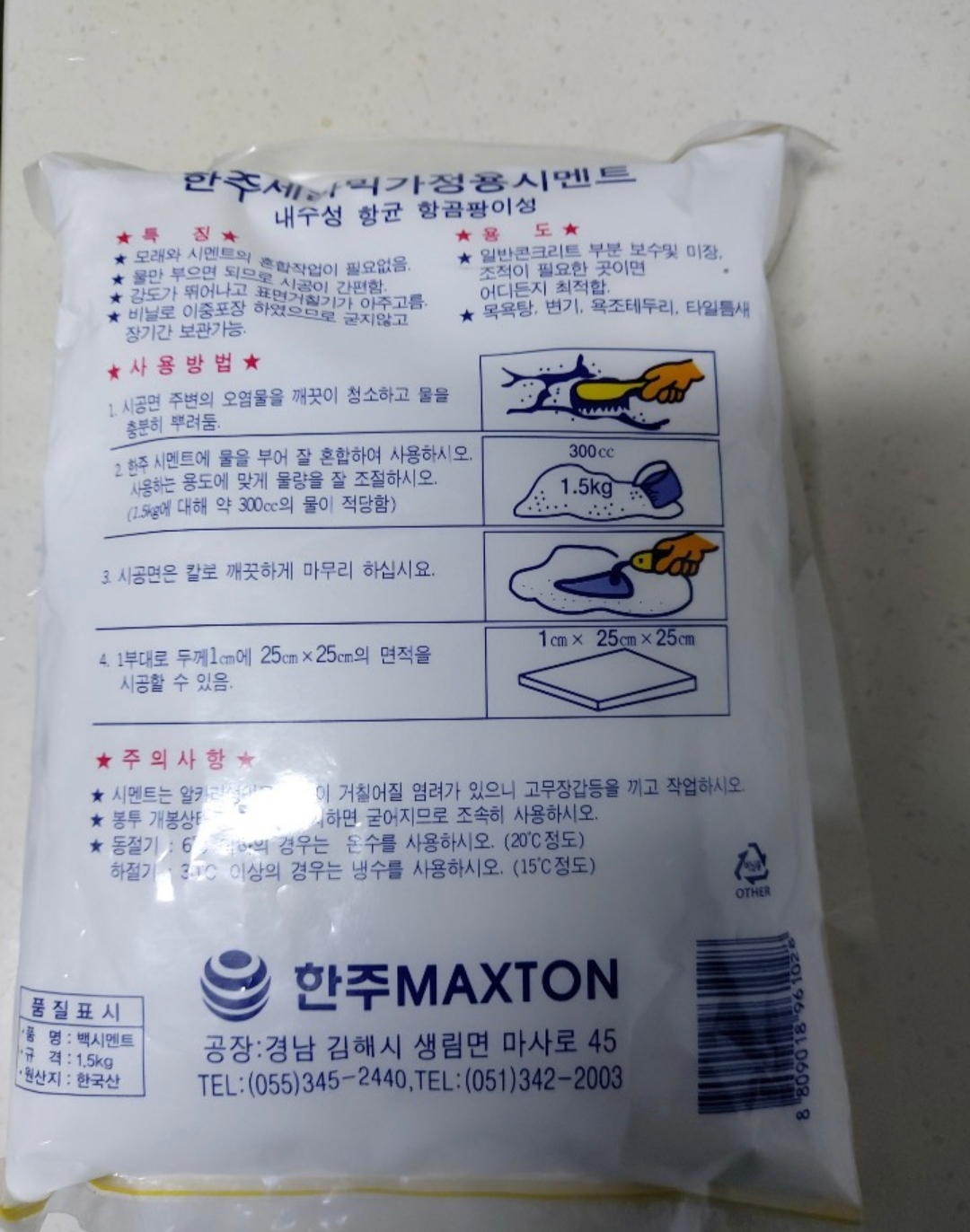 한주 MAXTON 에서 나온 한주세라믹가정용시멘트입니다.