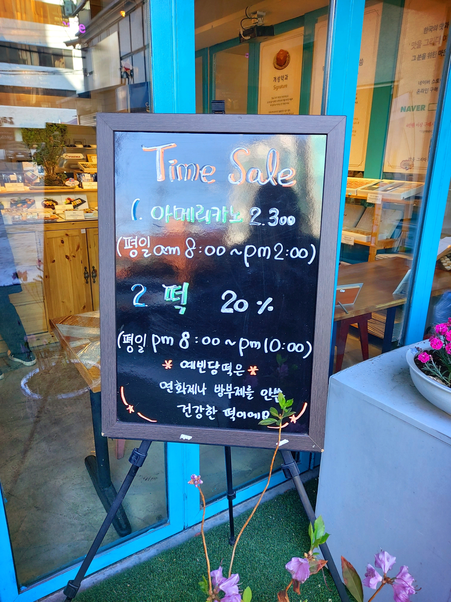 사진의 가판대에 적혀있는 시간대에 맞춰가시면 더 저렴하게 아메리카노랑 떡을 즐기실 수 있어요!