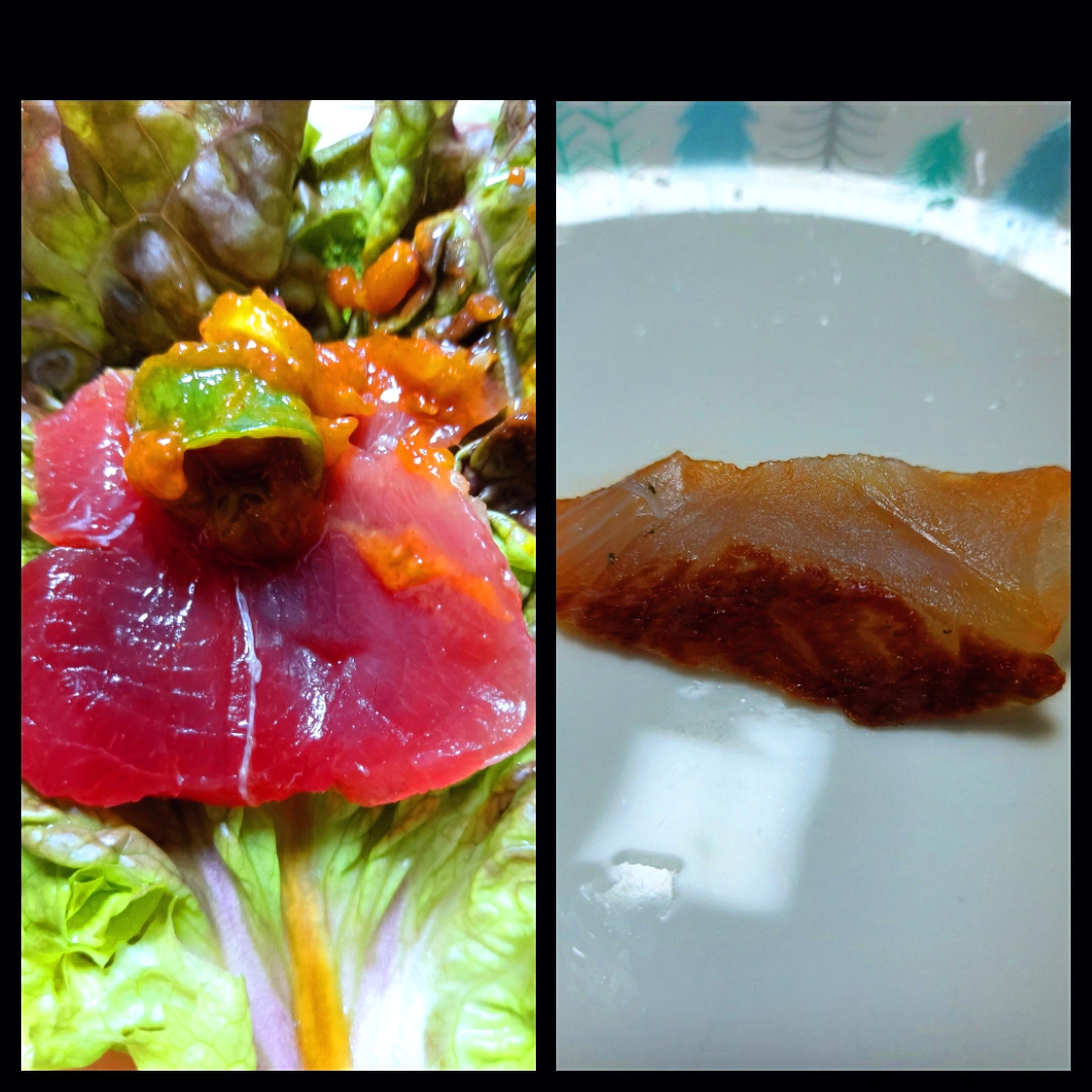 1번째부터 연어, 우럭, 광어지느러미, 대참돔입니다.