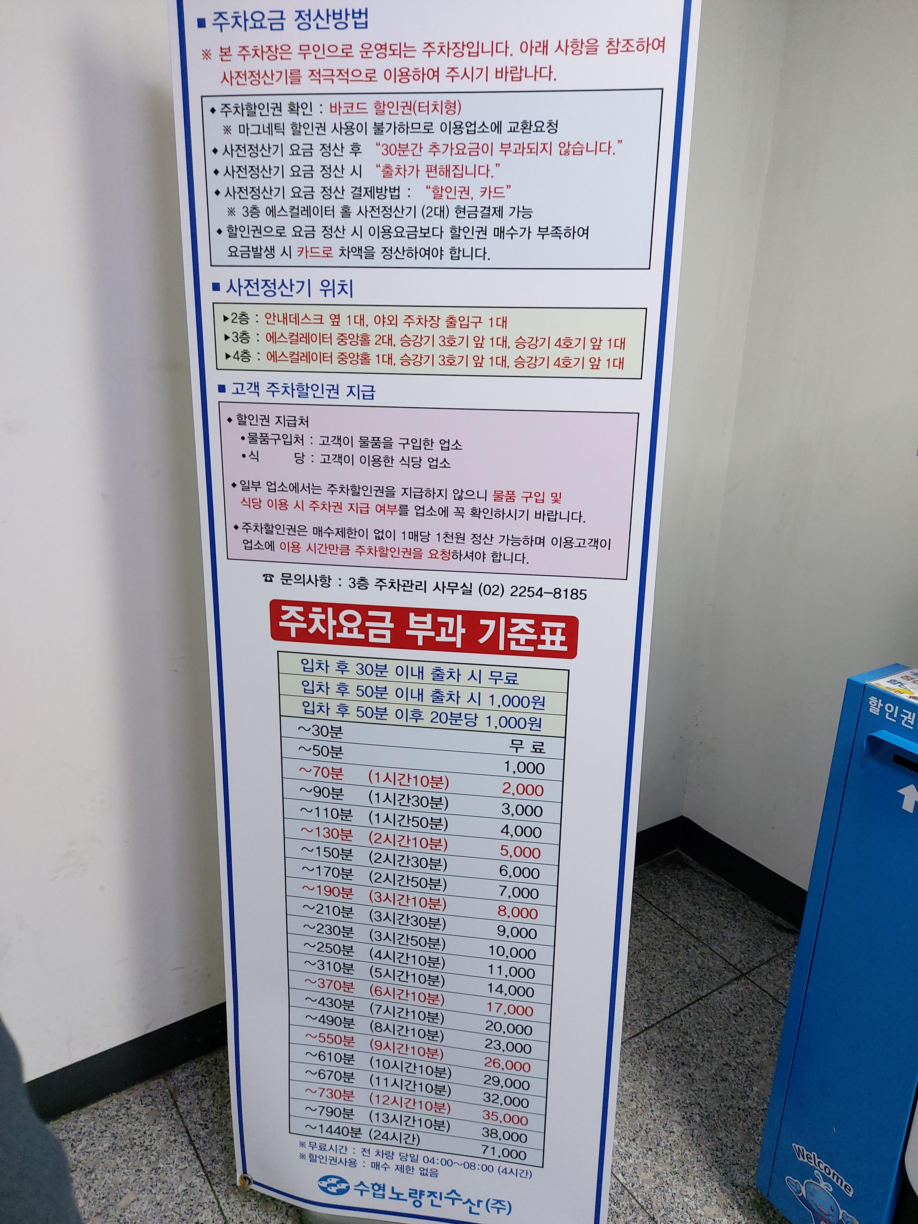 그리고 주차요금은 30분까지는 무료입니다!