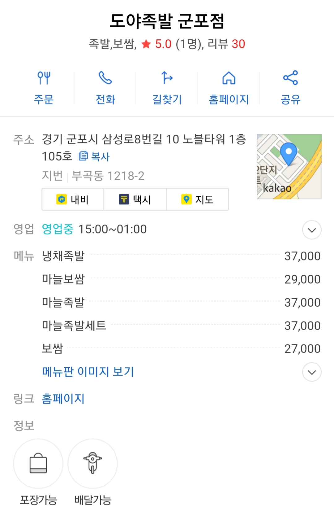 군포 삼성마을에 위치한 족발 맛집