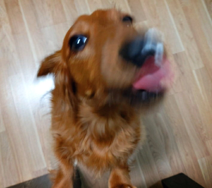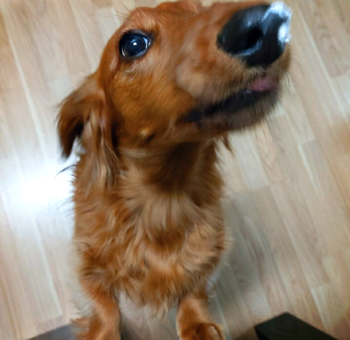 장모 닥스훈트라서 식탐이 많은데 한입 달라고 점프하다가 나이프에 묻은 생크림이 살짝 코에 묻었는데 히히